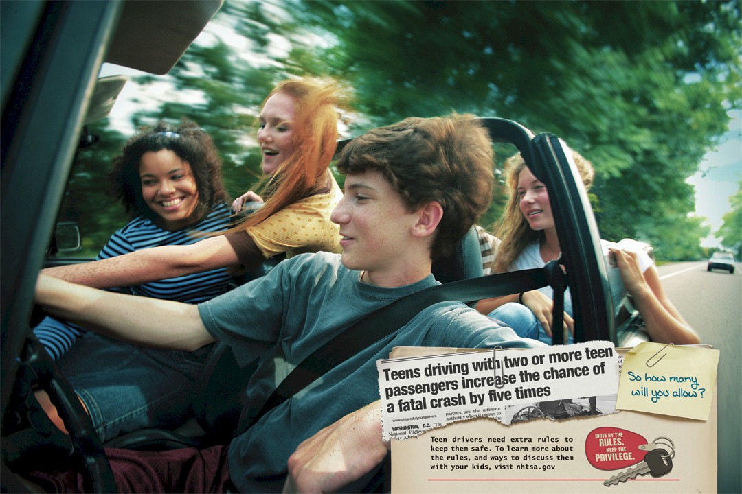 Young drivers when driving with their friends are particularly vulnerable to passenger distractions. According to a publication funded by the World Health Organization and the NHTSA, "various studies have shown that young drivers' crash risk is significantly increased by the presence of similarly aged passengers in the vehicle". As a result, many States have adopted graduated licensing laws that limit or restrict the number of passengers allowed in a vehicle with a new driver.